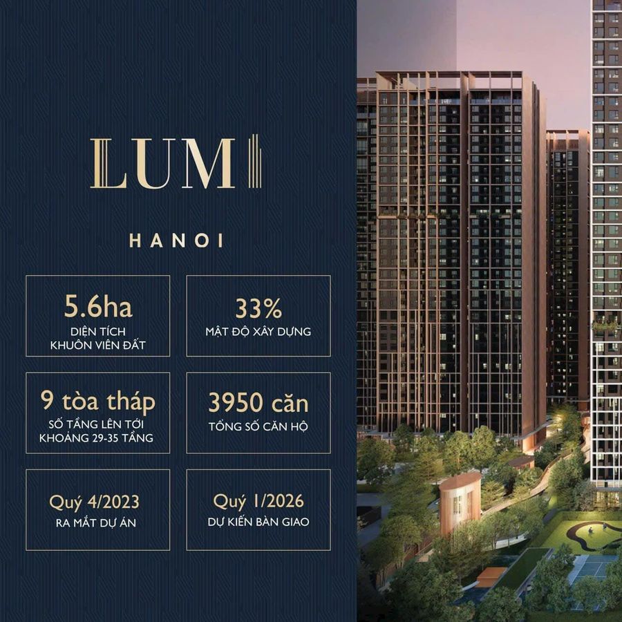 Lumi Hanoi tọa lạc tại vị trí đắc địa ở phía tây của Hà Nội. Tổng giá trị phát triển dự án dự kiến khoảng hơn 1 tỷ đô la Singapore (18 nghìn tỷ đồng). Với tổng diện tích khu đất gần 5,6 ha, dự án dự kiến khởi công vào Quý I/2024.